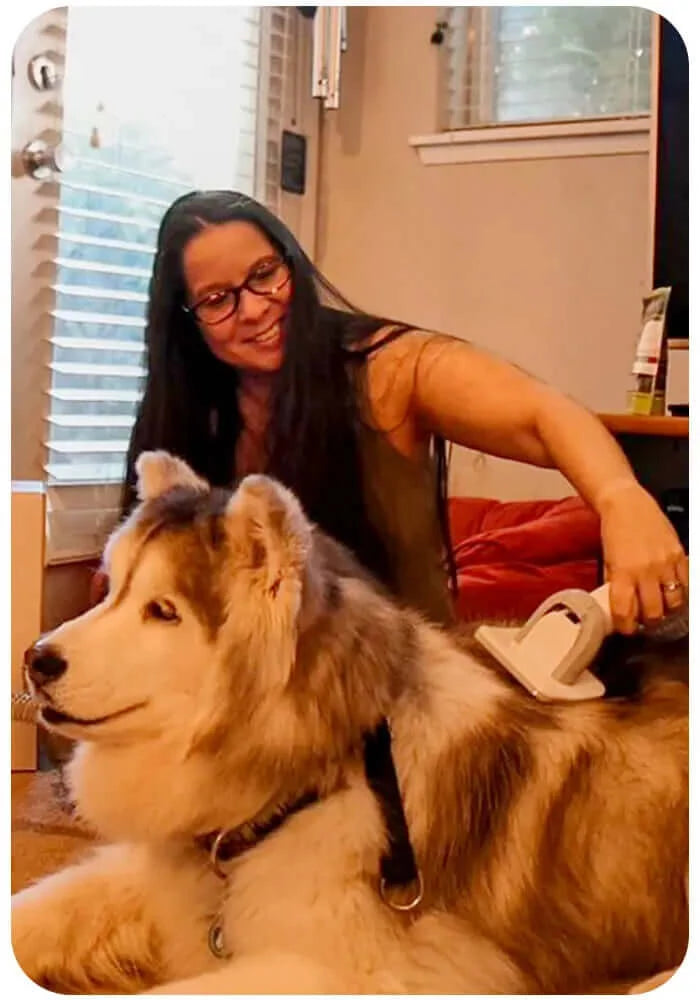 - Next, use a grooming brush or de-shedding brush without turning on the vacuum to help your pet get familiar with the process.