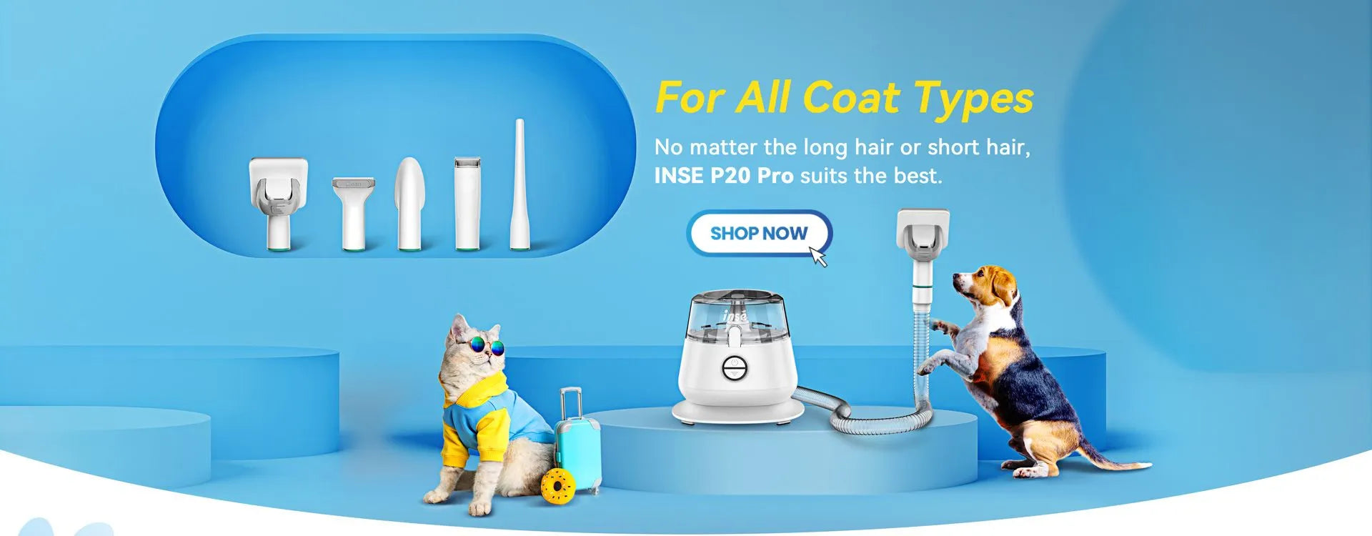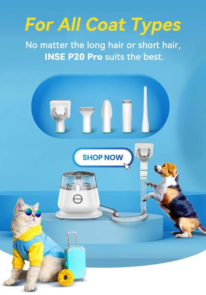 INSE P20 Pro revolutionizes at-home pet grooming by combining five professional tools, leaving your dog or cat looking tidy and beautiful without any messy hair on the floor.
