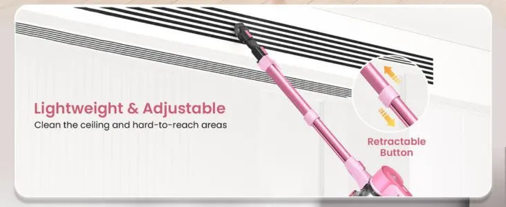 Featuring a retractable tube and practical attachment, this lightweight and adjustable vacuum can easily clean hard-to-reach areas, making it user-friendly for everyone.