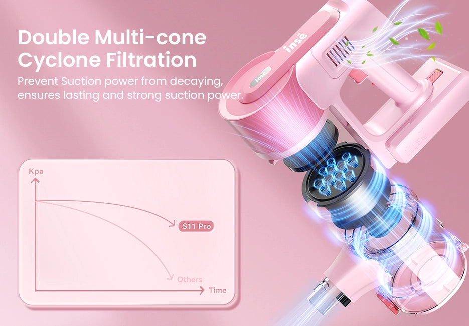 Enhanced with a multi-cone filter component and filter pads, the S11 Pro effectively traps all dirt and dust, expelling clean, fresh air.
