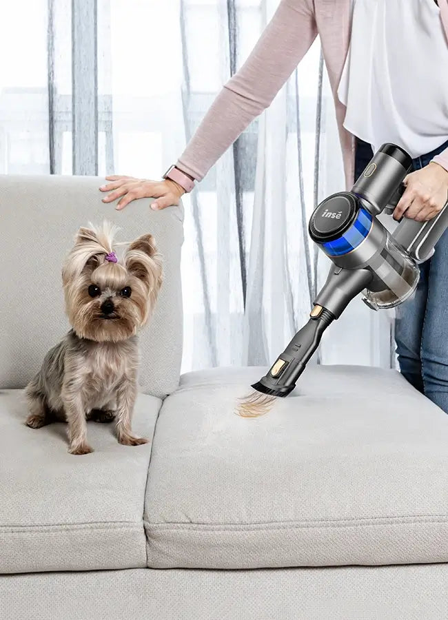 🌿400W Brushless Motor & 30Kpa Powerful Suction: Equipped with a 400W brushless motor, INSE S9 cordless suction vacuum generates strong 30Kpa suction, making it perfect for hardwood floors, low /medium pile carpets, tiles, and marble. It easily picks up dirt, debris, dust, pet hair, cat litter, and pet food.