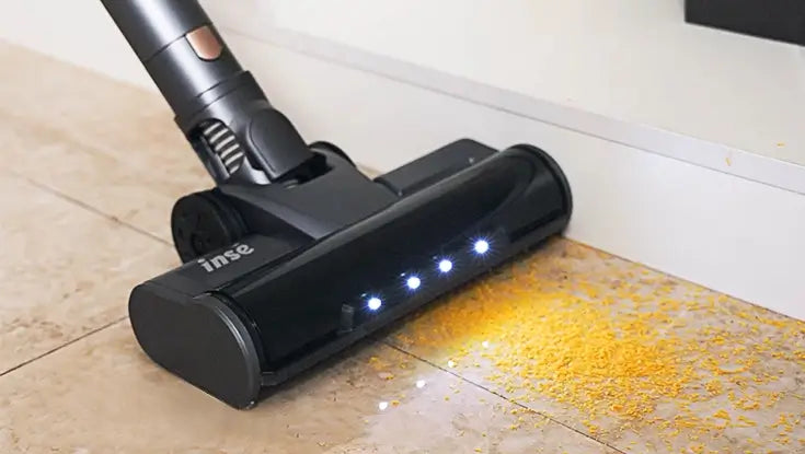 The head brush features 4 LED lights that illuminate dust and debris in dark areas, also can be rotated and tilted, allowing for easy cleaning of hard-to-reach places.
