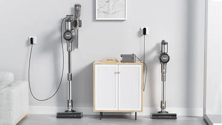 Charged either alone or while attached, leaned on the wall with the help of the cordless vacuum wall mount, making it super manageable after use.