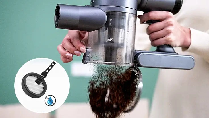One press empty to avoid getting your hands dirty. Suggest cleaning the components with cold water and cleaning the HEPA with the incident cleaning gadget.